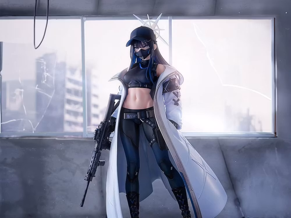 From Blue Archive comes 1/7th scale Saori — the leader of the Arius Squad. Her slender, muscular build, signature fur, assault rifle, and mechanical mask have all been sculpted with high levels of detail. The figure comes with removable face parts so you can display her with the mask on or off, and both the hat and cape can be removed for more display options. The base is designed as ruins, perfect for posing Saori in an action-packed scene with Sensei.
