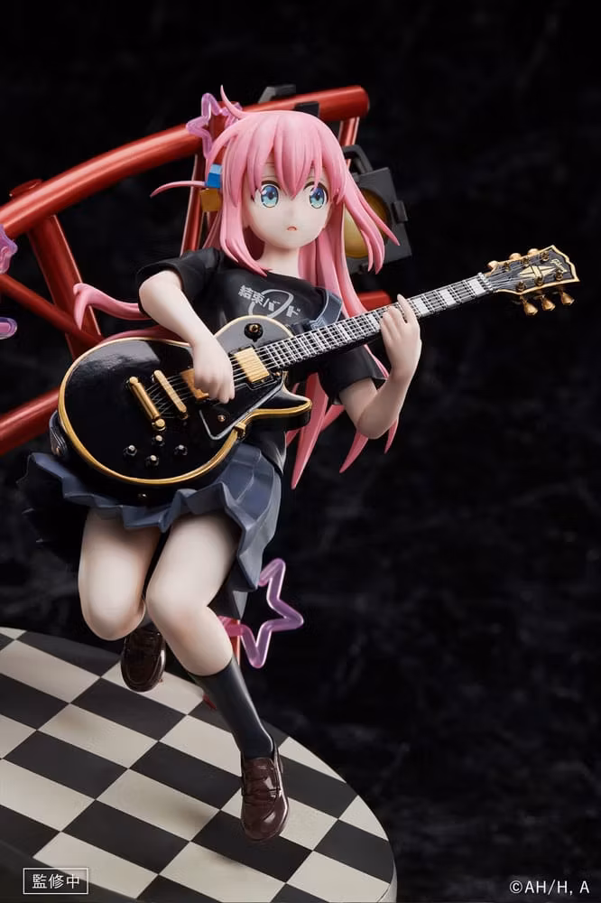 What really catches the eye is the dynamic pose, as if a single moment from a live performance has been frozen. The detailed sculpting and careful painting create a realistic stage impression and draw the viewer in. The guitar in her hands is faithfully reproduced down to the smallest detail — you can almost imagine the sound of her playing. The base is a highlight in itself, with a luxurious design inspired by the live house STARRY from the anime. The base can be viewed from all angles and includes a neon-like Bocchi sign that enhances the atmosphere. Filled with the charm of Bocchi the Rock!, this 1/7th scale figure is a carefully crafted piece worth admiring up close.