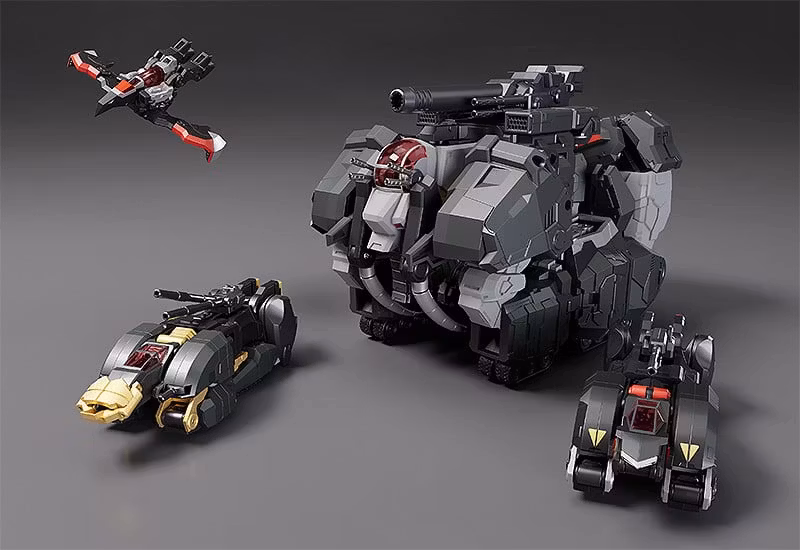 The four units — Eagle Fighter, Land Liger, Land Cougar and Big Moth — are built with durable alloy parts for a heavy, quality feel, and combine into one unit without any extra parts. The transformations of the shoulder and chest sections faithfully recreate the silhouette of the anime. The set includes Dancouken and Daigan, with Daigan being able to be separated into weapons for each Beast Machine.