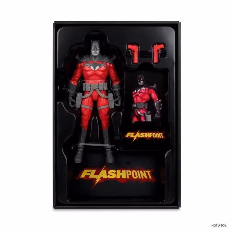 This figure depicts Flashpoint Batman (Thomas Wayne) with black and white accent details that reflect the dark timeline's aesthetic.