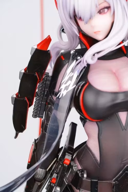 Scarlet in the Black Shadow outfit in 1/4 scale from GODDESS OF VICTORY: NIKKE. The figure depicts Scarlet in a powerful stance as she draws her red katana, with high levels of detail taken directly from the game. A dramatic addition to your collection.