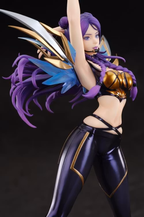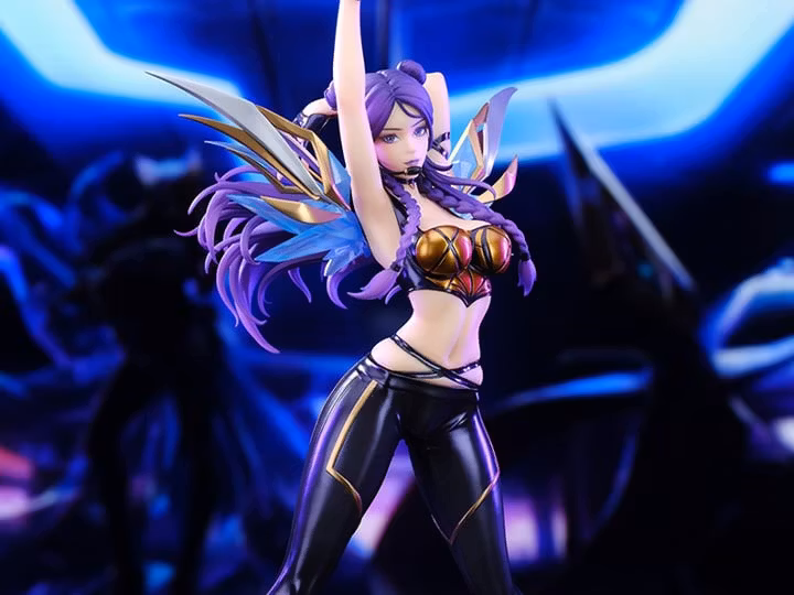 From League of Legends comes the 1/7th scale K/DA Kai'Sa from Apex! The figure stands approximately 12 inches tall and features Kai'Sa in her K/DA skin in a confident, stage-ready pose. She has dynamic purple hair and wings on her back, ready to take the spotlight. The figure also includes a bonus keychain depicting Kai'Sa in her K/DA skin. The perfect addition to your collection!