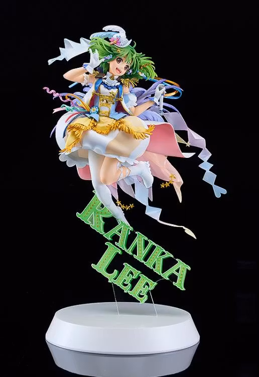 From Macross Frontier comes a 1/7th scale figure of the super-dimensional Cinderella Ranka Lee! Based on a 10th anniversary illustration by Risa Ebata, the figure captures a very dynamic pose. Ranka's signature "Kira" pose, innocent smile, and delicate physique are faithfully reproduced to highlight her charm and maintain the atmosphere of the illustration. Combine with Sheryl Nome ~Anniversary Stage Ver.~ (sold separately) for a grand display.
