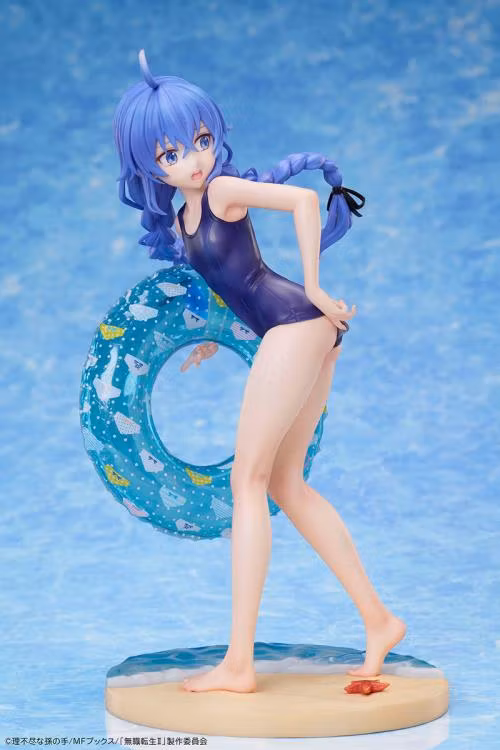 From the anime series Mushoku Tensei: Jobless Reincarnation comes the 1/7th scale Roxy Migurdia (Navy Blue Swimsuit Ver.) from Design Coco. The figure depicts Roxy, Rudeus' teacher, in a tight dark blue swimsuit on a day at the beach — she looks back shyly while holding an inner tube. A stylish addition to your collection.