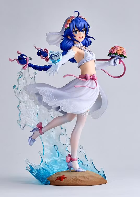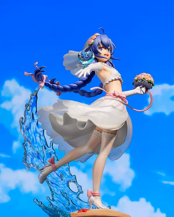 From Mushoku Tensei comes a 1/ scale figure of Roxy Migurdia in an original wedding dress-like swimsuit. Roxy, a Water King-class magician, forms a heart-shaped water bubble in her right hand while holding a wedding bouquet in her left. The figure has a summery beach base with splash effects in blue gradients.