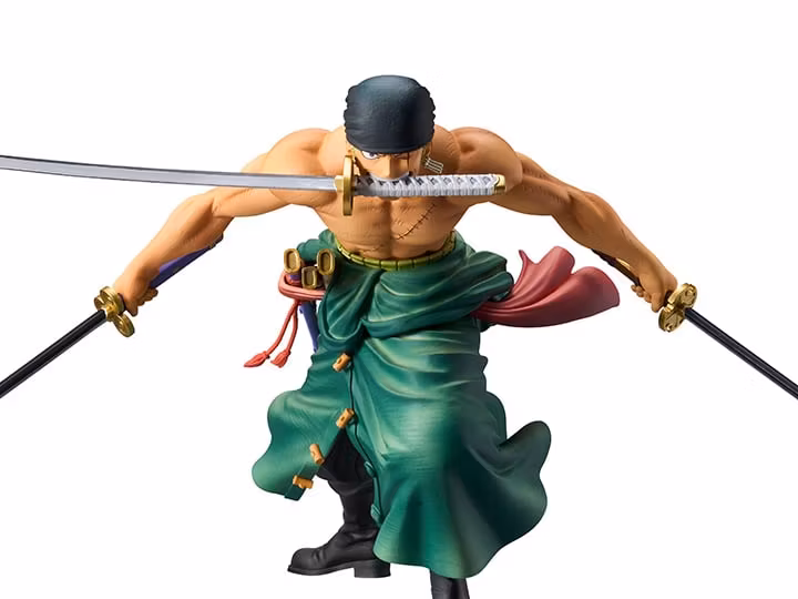 Nytt tillskott i Banpresto’s Grandista-serie: Roronoa Zoro från One Piece. Figuren är cirka 9 tum hög.