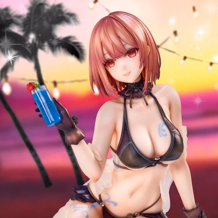 From illustrator Necomi comes a new figure in the Season x Body Art series: One More Drink for the Vacation. In a bikini and with a big smile, the beachgoer holds up a blue drink while enjoying the sun. The figure comes with a removable transparent drape for extra variety and brings lovely summer vibes to your display.