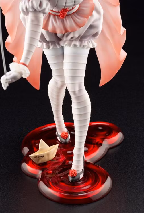 This eerily adorable rendition holds a balloon in her hand with a mischievous smile, and Yoshiki Fujimoto's realistic sculpting brings the statue to life. The ruffles on the costume are varied in shape and size, carefully crafted to add volume without looking heavy. The SS Georgie floats in the red-colored pool, adding to the eerie atmosphere.