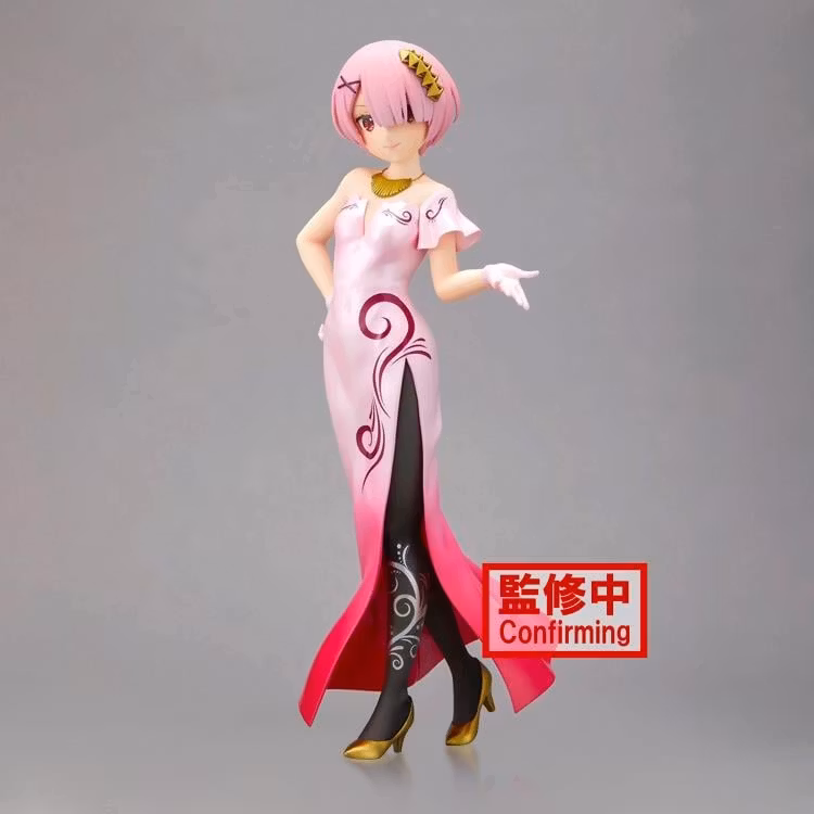 Ram from Re:Zero -Starting Life in Another World- is featured in the Glitter & Glamours series. She has pink hair with a right side parting and still wears a horn that gives her magical power. Along with her twin sister Rem, she serves as Roswaal's maid.