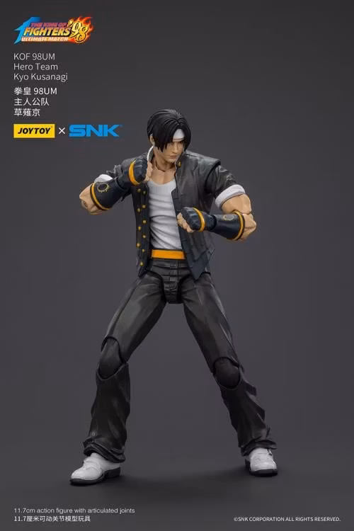 A new fighter is ready to take his place! From THE KING OF FIGHTERS '98: Ultimate Match comes Kyo Kusanagi in 1/18 scale. Dressed in his classic black and yellow outfit, Kyo comes with an extensive range of accessories, including fire effects for his powerful special attacks. Sculpted and painted with details taken directly from the game — perfect for reliving legendary matches or creating new battles in style.