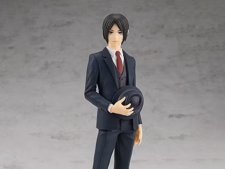 Från Attack on Titan kommer en ny Pop Up Parade-figur av Eren Yeager i kostym. Figuren visar Eren i en detaljerad dräkt, stående i en populär pose medan han håller i en hatt – perfekt för en stilfull display.