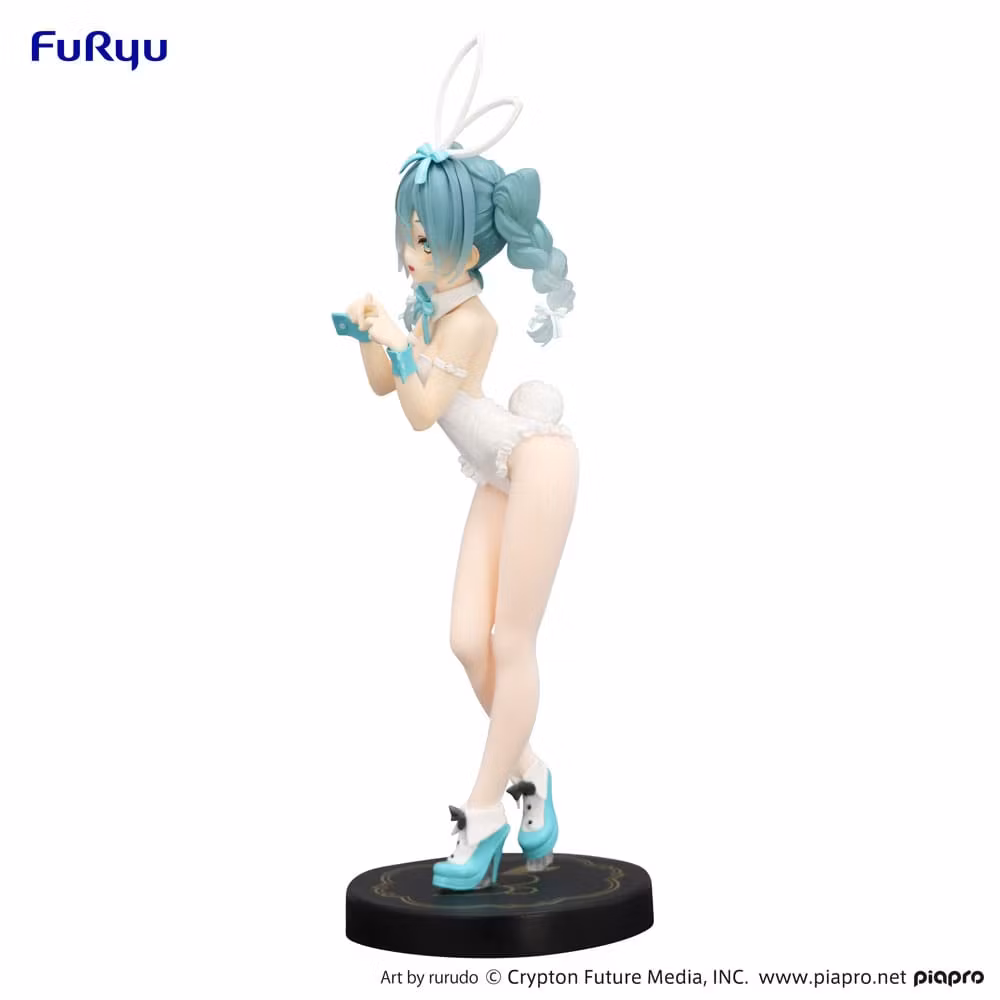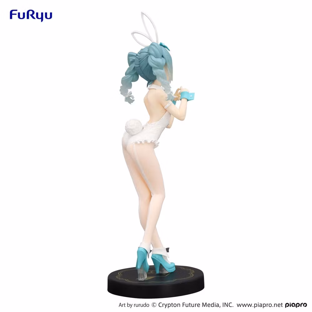 Detaljerad PVC-staty av Hatsune Miku (BiCute Bunnies, Rurudo White Color Ver.). Figuren är cirka 27 cm hög och levereras i tryckt låda.