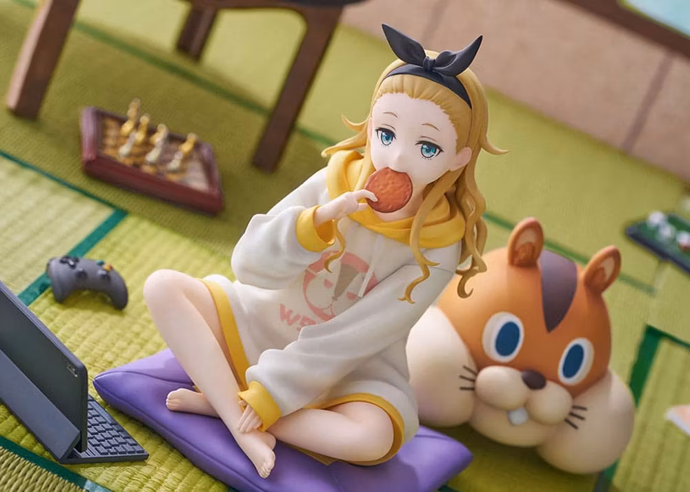 Kurumis vardagsstund fångas när hon kopplar av på tatami-mattan. Hon biter i en risknäcke och stirrar på den med ett tomt, oskyldigt uttryck — hennes ålder förblir mystisk. Den överdimensionerade hoodien och det vågiga håret ger ett charmigt intryck.