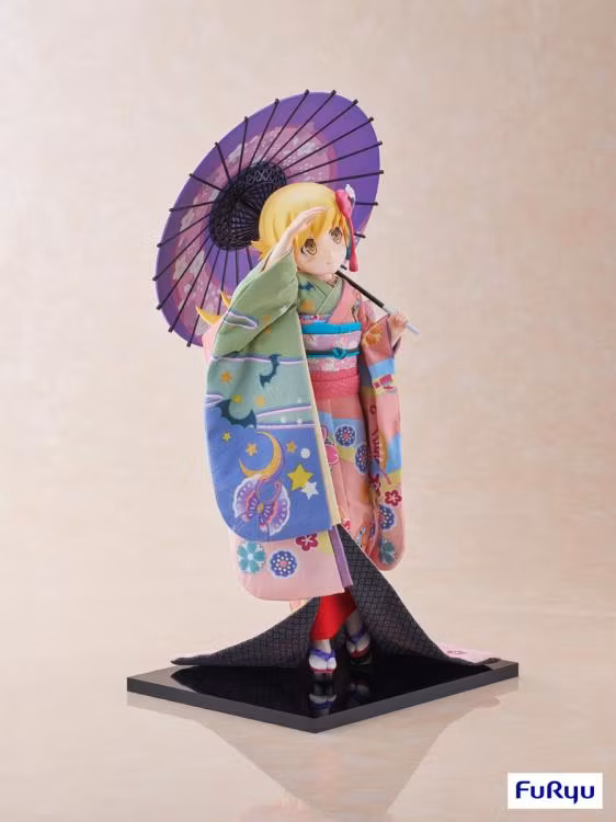 Från Monogatari kommer en stor figur av Shinobu Oshino i Japanese Doll-ver. Figuren är 42 cm hög och levereras i en fönsterlåda.