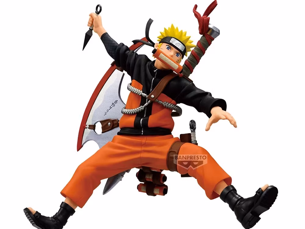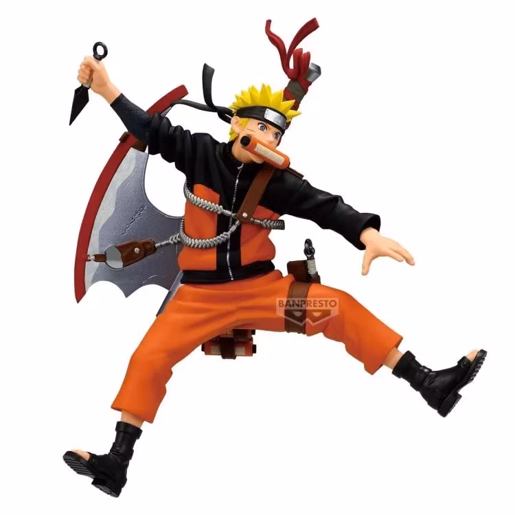 Banpresto presenterar en ny post i Naruto 72- och Vibration Stars-serierna: huvudpersonen Naruto Uzumaki är här! Figurens dynamiska pose fångar honom i ett anfall ovanifrån, omgiven av olika ninjavapen och detaljer trogna animens estetik. En imponerande detaljnivå som förmedlar nindynamiken. Perfekt