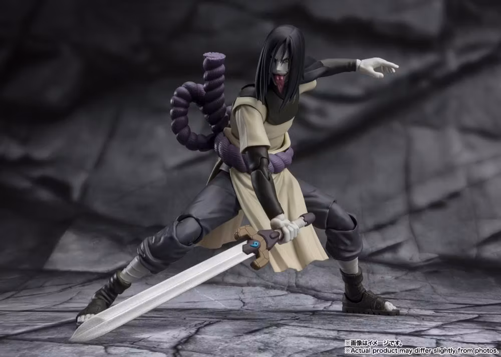Orochimaru från NARUTO -SHIPPUDEN- ansluter till S.H.Figuarts. Setet innehåller tillbehör som Sword of Kusanagi och Hidden Shadow Snake Hands för att återskapa sceniska ögonblick. Inkluderar även S.H.Figuarts Sasuke Uchiha‑head (bonusdelar).