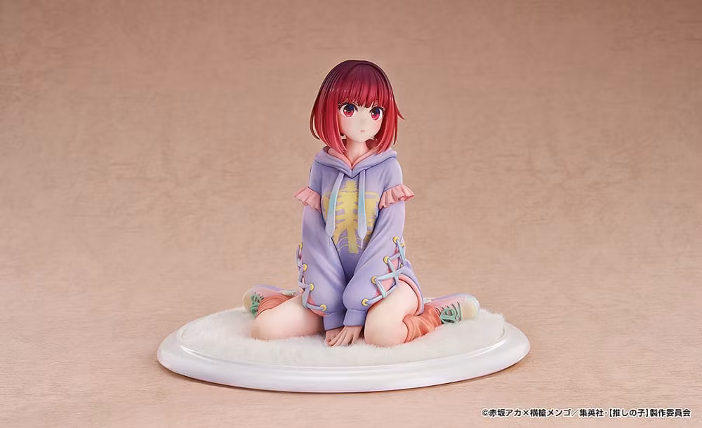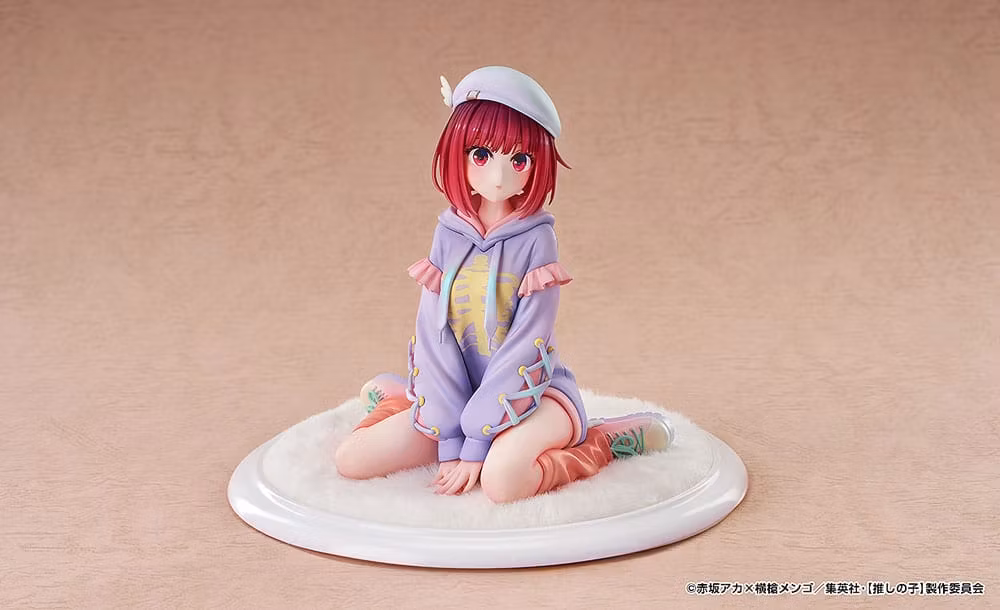 Från animen OSHI NO KO kommer en 1/6‑skalefigur av Kana Arima i Hoodie Style Ver., baserad på Blu‑ray/DVD‑illustrationen. Kostymen är målad i flera nyanser som ger rikare struktur och tredimensionellt djup. Hatt och band har pärlemorskimrande lack som ger en elegant glans ur vissa vinklar. Kanas ikoniska röda bob har noggrant skulpterats för ett mjukt och lätt intryck, och hårfärgen är målad för att reflektera outfitens toner.