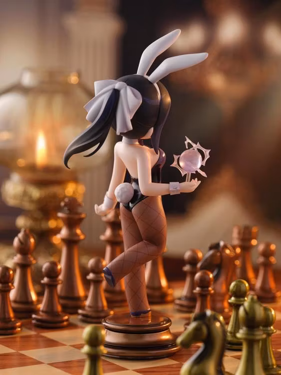 Baserad på Juamis illustration, känd från den officiella spin‑off‑mangan, fångas stridsjungfruns charm i en kompakt figur på cirka 16 cm inklusive bas. Narberal poserar redo att kasta eld‑ och blixtmagi från sin högra hand, med ett iskallt men bedårande ansiktsuttryck. Kanindräkten och tvåfärgade hårtoppar är målade i poppiga toner, och den schackpjäsinspirerade basen har en bronslik finish.