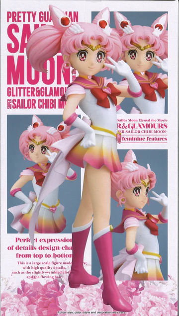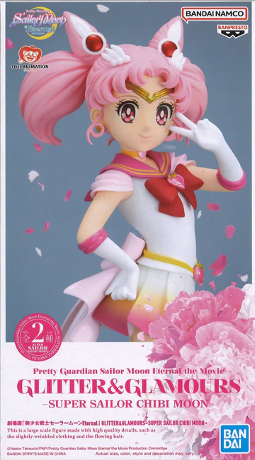 Lyft fram din samling med denna charmiga Pretty Guardian Sailor Moon Eternal The Movie Glitter & Glamours Super Sailor Chibi Moon (Ver. A)-figur! Denna detaljrika modell föreställer Super Sailor Chibi Moon i en elegant och ikonisk pose som fångar hennes magiska energi och karaktär från Sailor Moon Eternal-filmen. Figuren är perfekt för att ge liv åt din hylla, skrivbord eller vitrinskåp med ett unikt samlarobjekt som sticker ut. Den levereras i originalförpackning med förpackningsmått cirka 25,5 × 14,5 × 14 cm och väger ca 250 g — redo att visas upp i din samling direkt. Ett fantastiskt val för både nya och erfarna samlare som vill lägga till en glittrande och uttrycksfull figur från en klassisk anime-film.