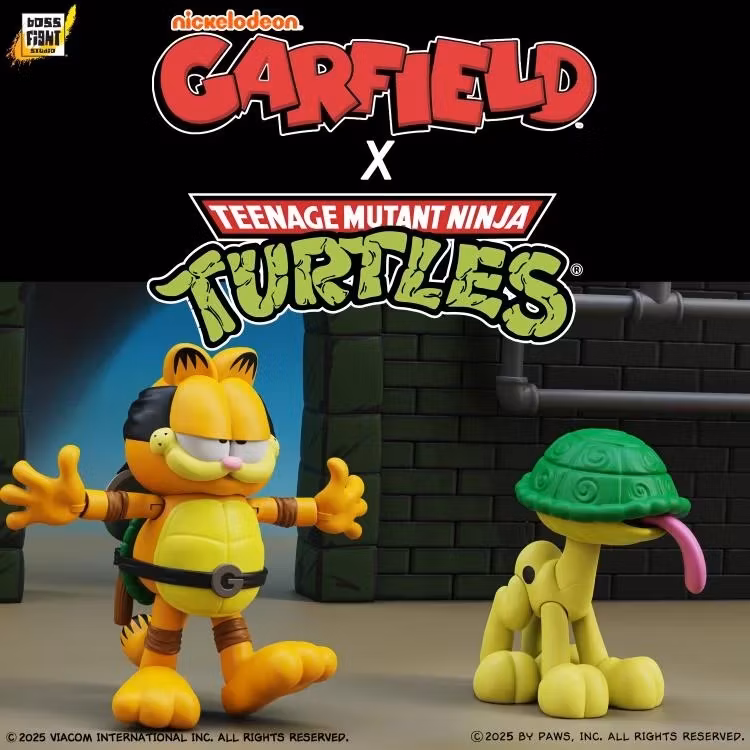 Baserad på den klassiska crossover-novellen av Garfield-skaparen Jim Davis och TMNT-medskaparen Peter Laird: 1991 mötte Garfield och Odie Teenage Mutant Ninja Turtles. Boss Fight Studio firar detta med ett speciellt actionfigur-2pack.