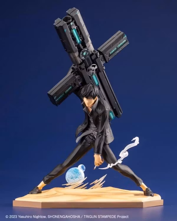 Hans avslappnade sätt och intensiva blick fångar den melankoli som präglar Nicholas — reserverad men tyngd av sitt förflutna. Precis som ARTFX J Vash the Stampede TRIGUN STAMPEDE Ver. har basen en ökenscen och två månar. Ställer du honom bredvid Vash fogas baserna ihop och bildar de fem månarna i No Man’s Land som svävar över den brännande öknen.