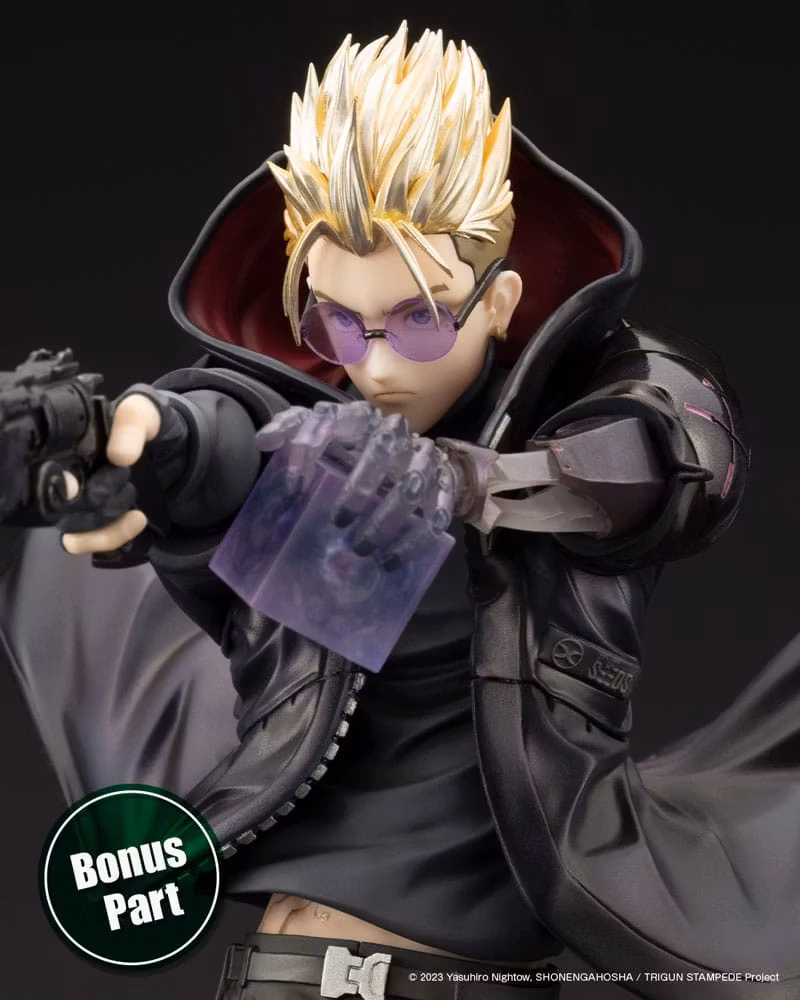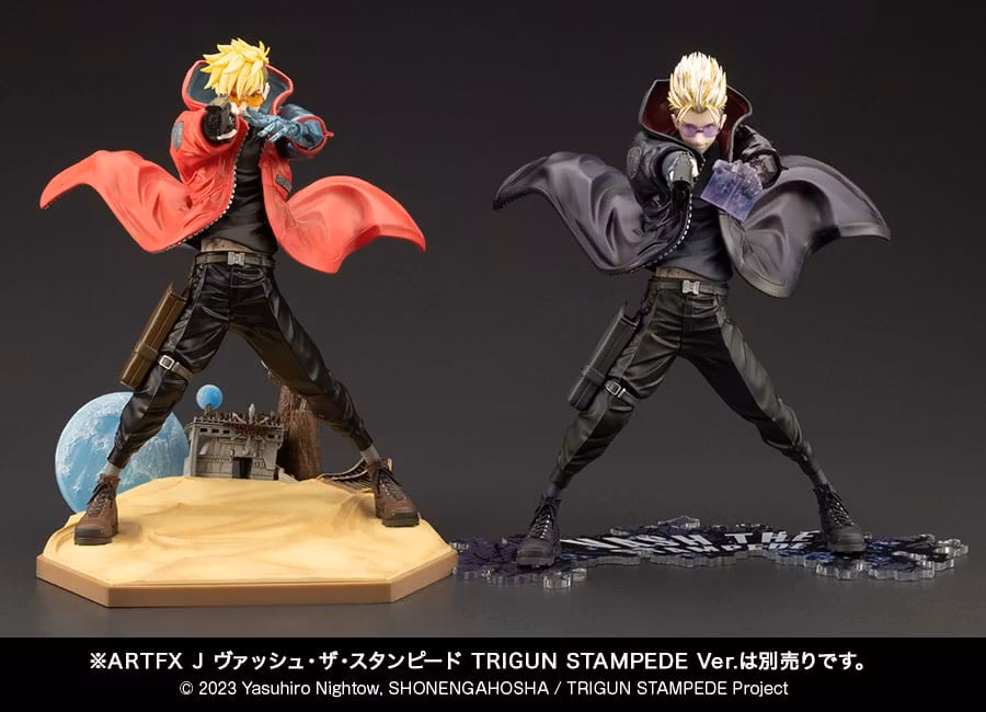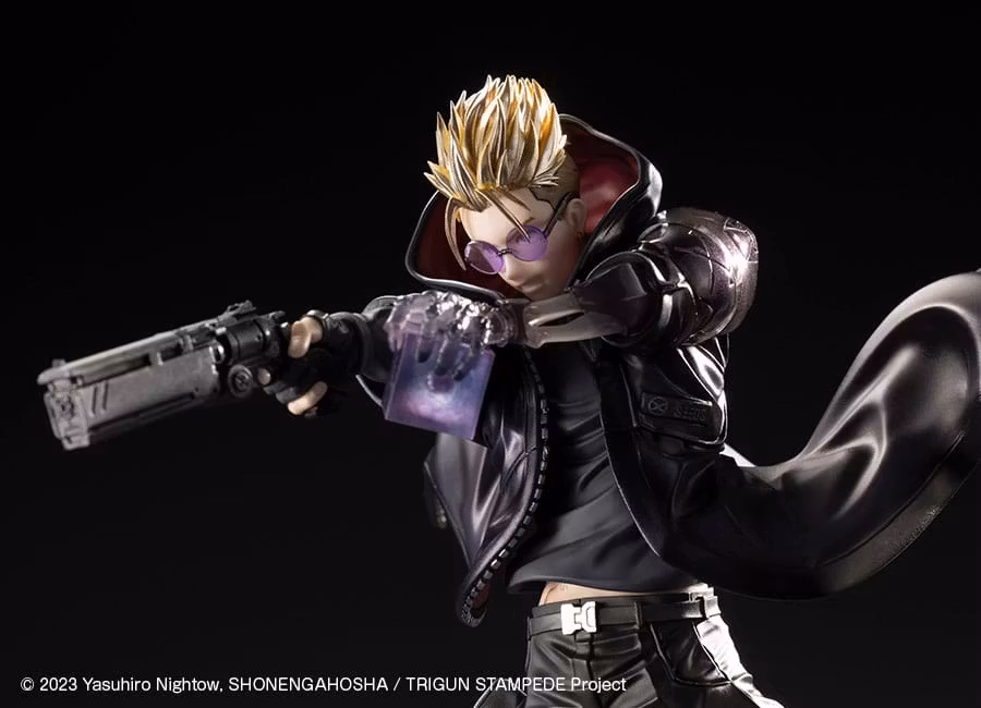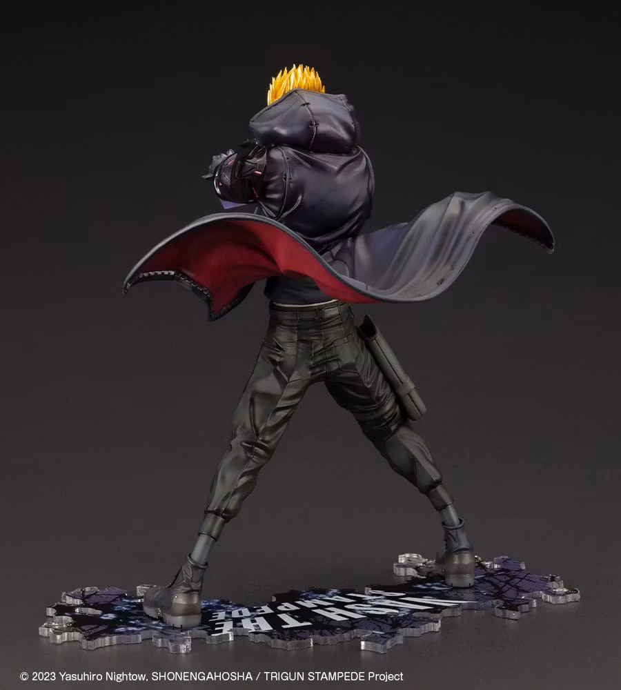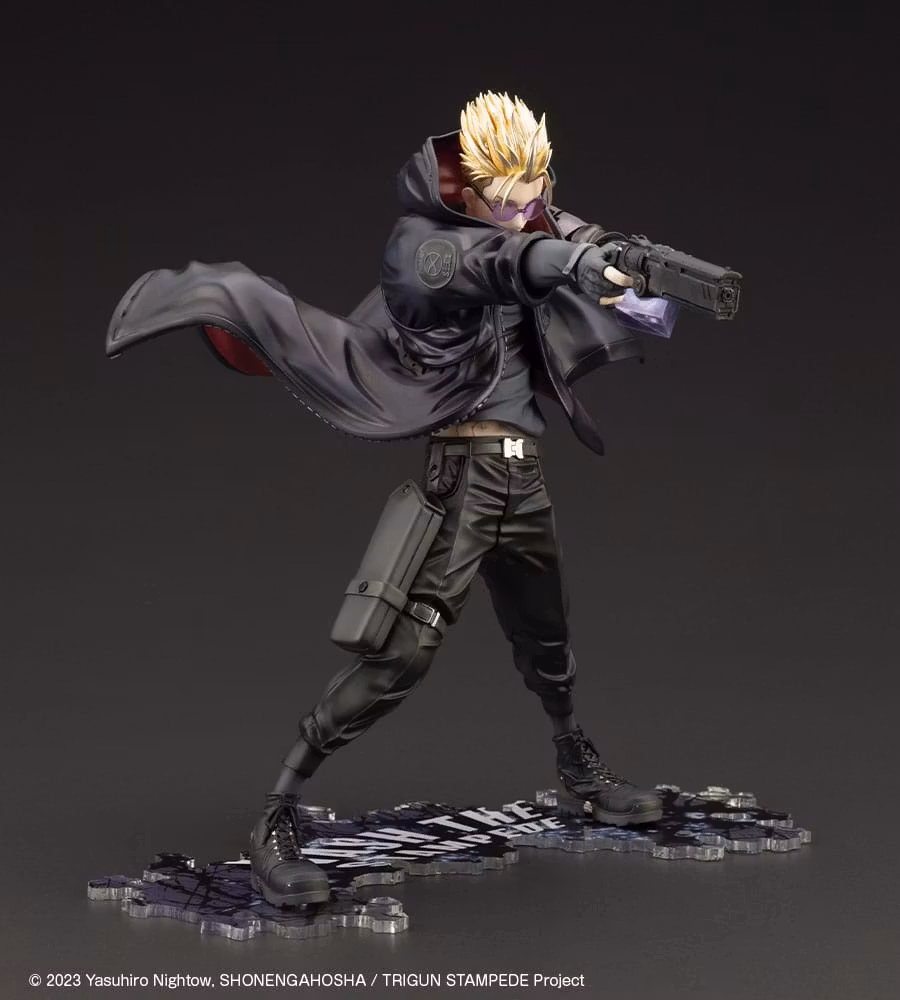 Vash the Stampede från TRIGUN STAMPEDE återvänder i en mörkare färgvariant som ingår i ARTFX J-serien — nu i ”The Gunman in Black”-version med omgjorda delar.