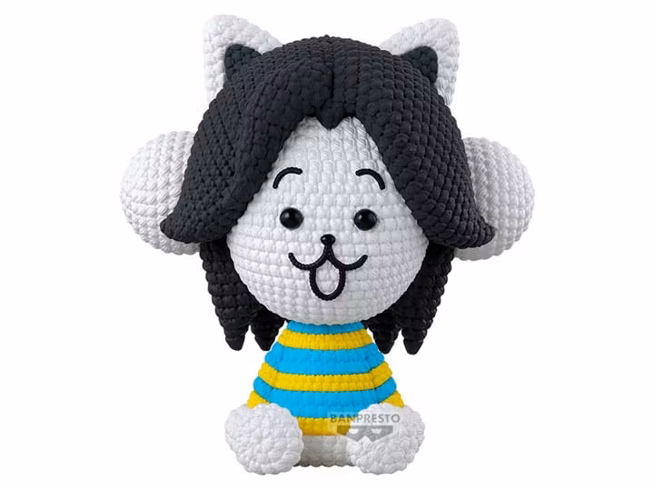 Säg hOI!! till Temmie, den mysiga butiksägaren från Undertale, i Banpresto’s Amicot-serie. Denna figur i virklook efterliknar garnstruktur och fångar Temmies udda charm — från flaxande öron till glada leende — i en varm och bedårande stil.